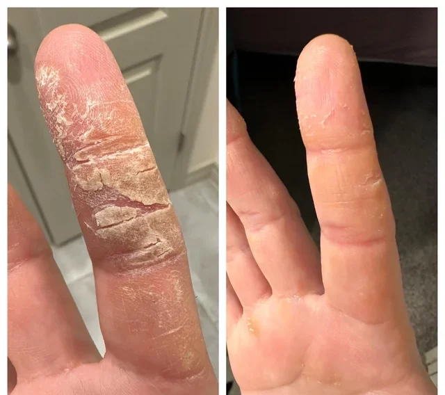 Uomo, 32 anni . Le lesioni cutanee sulle mani sono circa il 73%, condizione precancerosa, artrite. Dopo un ciclo di trattamento di sette settimane Camoactive rimozione completa delle placche cutanee, miglioramento dellimmunità, arresto della distruzione delle articolazioni delle dita .
